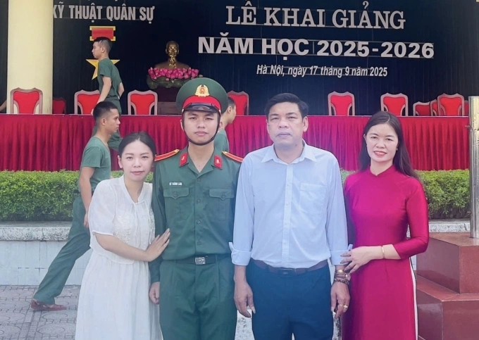 Bố mẹ và chị gái cùng Lâm ở lễ khai giảng của Học viện Kỹ thuật quân sự.