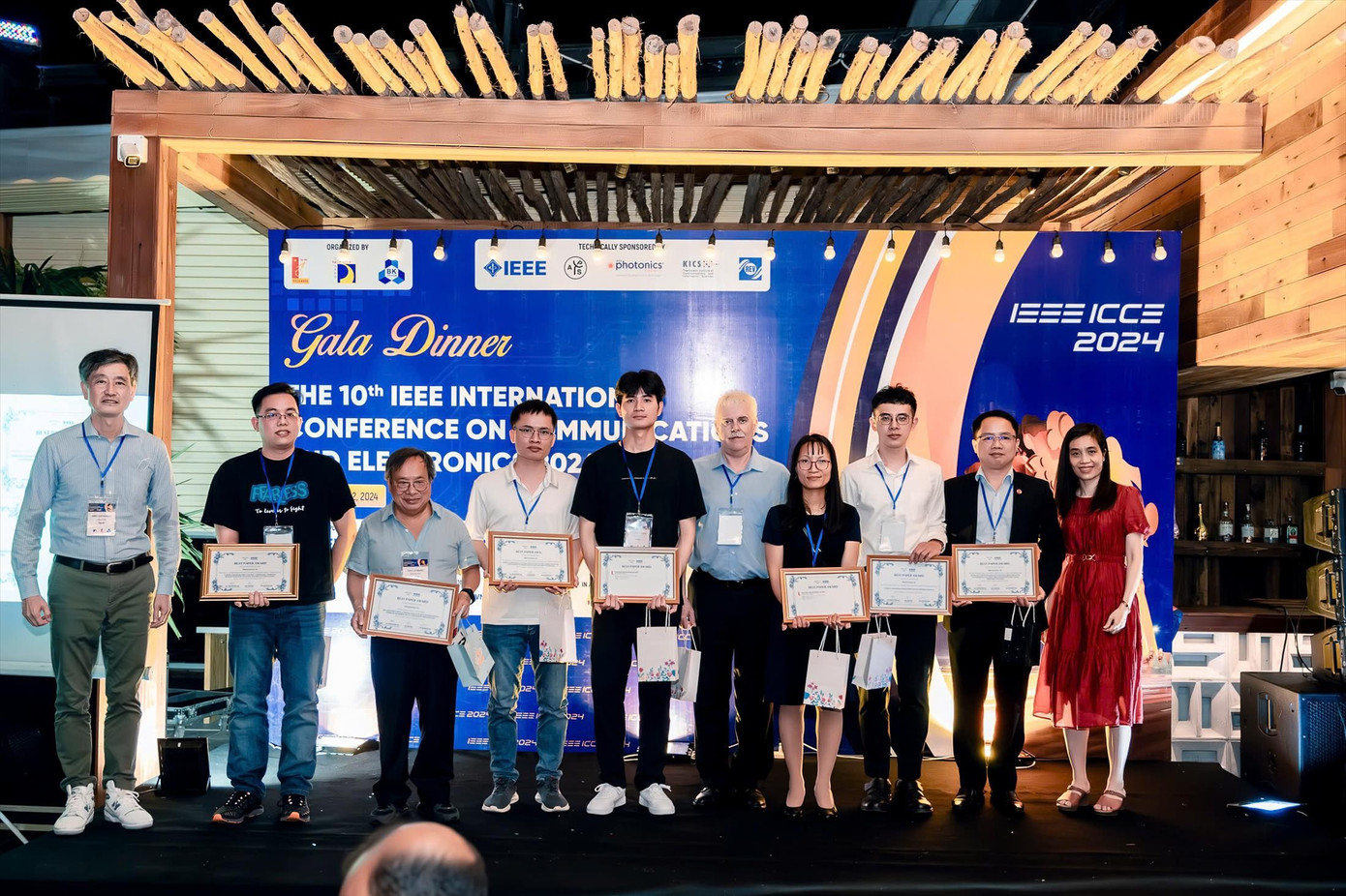 TS. Vũ Thái Học (thứ 2, từ trái qua) nhận giải bài báo khoa học xuất sắc tại hội nghị quốc tế lần thứ 10 về điện tử và truyền thông năm 2024, tại TP Đà Nẵng.