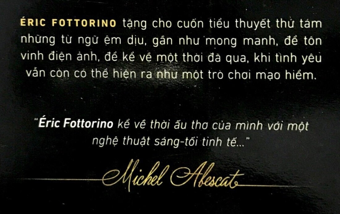 Éric Fottorino đã dành rất nhiều tâm huyết để bằng con chữ của mình phục dựng nét đẹp của bộ môn nghệ thuật thứ bảy, đề cập đến lời thoại trong phim, cảnh quay, nhà làm phim thuộc thế kỷ XX, Paris hiện ra giữa hai tranh màu sáng tối, về một thời đã qua đầy mỹ lệ.